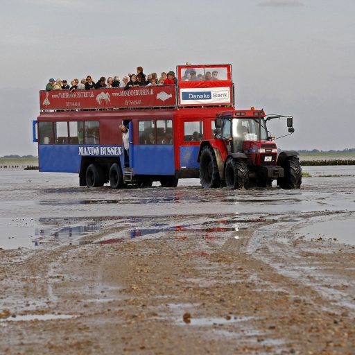 2. dag. Efter morgenmad kører vi mod Mandø. Det sker helt på tidevandets præmisser, idet man kun ved lavvande kan køre til og fra øen. Vi når til byen Vester Vedsted, hvor vi skifter vores bus ud med traktor-bussen. Turen over vadehavet er en helt unik oplevelse. Turen varer ca. 45 minutter. Vi går en lille rundtur i den lille by. Herefter spiser vi frokost på den gamle skole. Vi forlader Mandø igen, inden tidevandet stiger. På hotellet sidst på eftermiddagen.